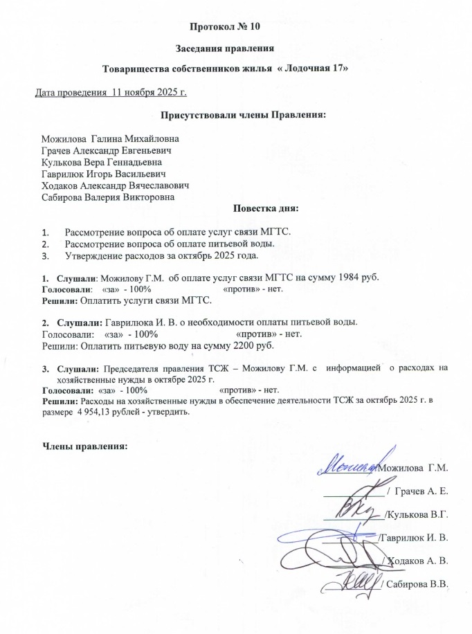 Протокол заседания Правления № 10 от 11.11.2025 г.